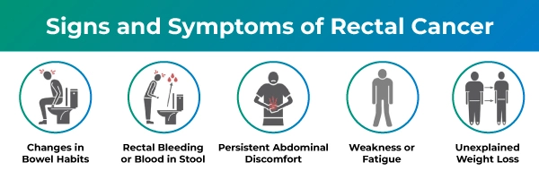 Rectal cancer may not present symptoms in its early stages. However, as the disease progresses, various signs and symptoms may emerge. Here are some key indications to watch out for: